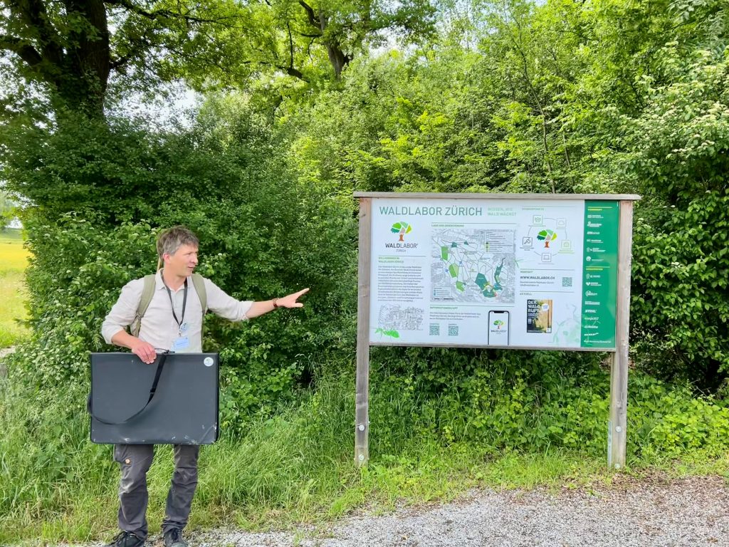 Zurich’s “Waldlabor”, or Forest Lab, functions as an innovative demonstration and research site – a prototype for public engagement and science communication that we get to experience as part of a full-day programme at the Integrate Network workshop. Together with Martin Brüllhardt, managing director of the Forest Lab, we walk towards one of the entrances of the forest area. He explains that the initiative to bring this project to life originated with WaldZürich, a local association of forest owners.