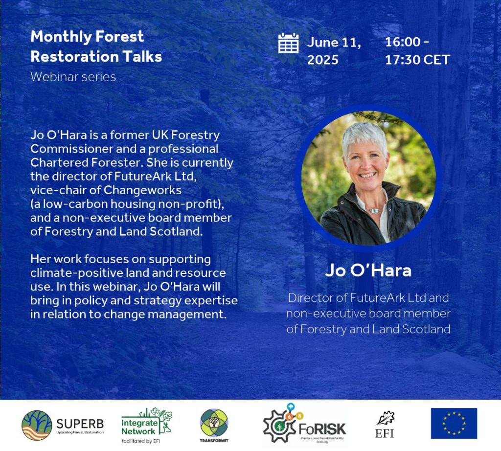 This Integrate Network webinar, organized under the “Forest Restoration Talks” series in collaboration with SUPERB Project, TRANSFORMIT project and FoRISK facility, brings together forestry professionals, environmental scientists, policymakers, and a landowner to examine the extent and nature of the storm-related damage in Ireland as well as look at other European examples of major forest disturbances.